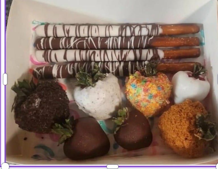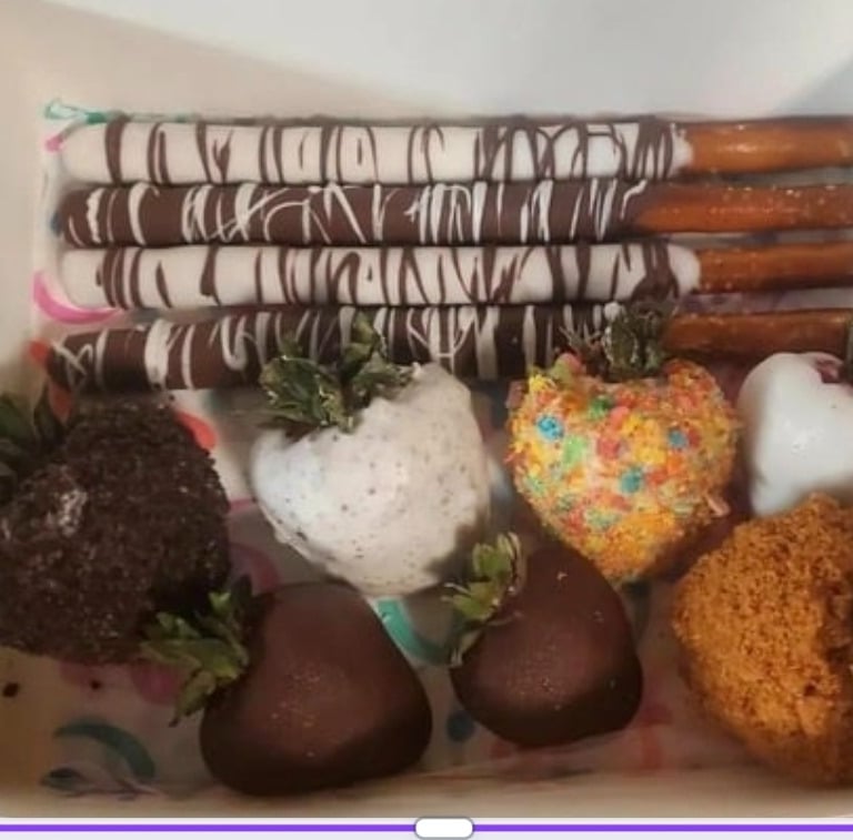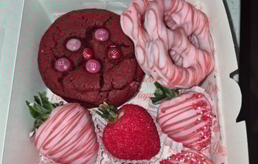 We specialize in cakes, cookies, candied fruit, popcorn, and custom party favor treats that are made fresh and full of flavor. Whether you’re celebrating a birthday, baby shower, wedding, or just treating yourself, our goal is simple... to make every moment a little sweeter.